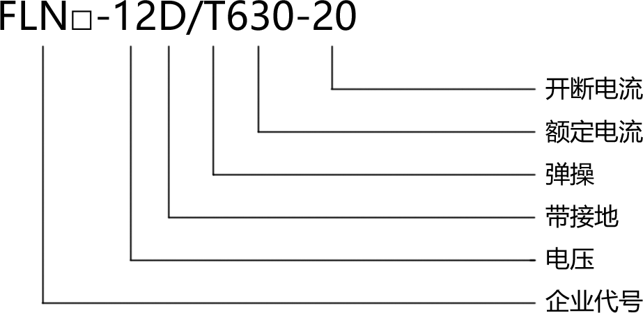 FLN □ -1D/T630-20 load switch complies with GB3804 3.6KV-40.5KV High Voltage AC Load Switch, GB16926 The relevant requirements of the "AC High Voltage Load Switch Fuse Combination Electrical Appliance". Main circuit: 630A-20KA (4s), 25KA (3s); Mechanical lifespan: 5000 cycles; Grounding circuit: 20KA (2s); Mechanical lifespan: 5000 cycles